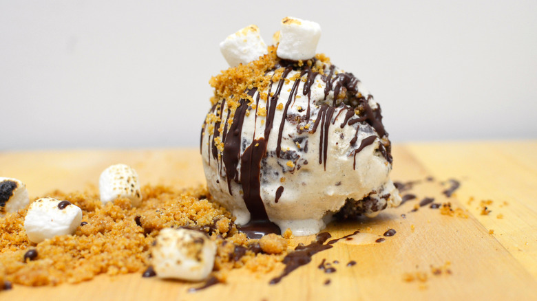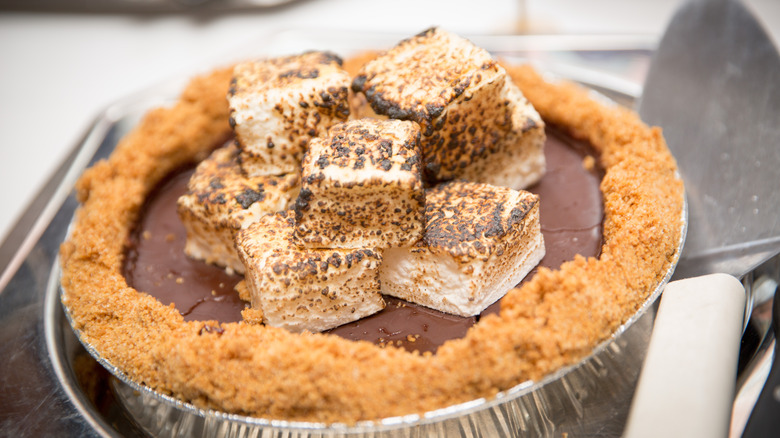 S'mores pie is a baked version of s'mores that produces the same gooeyness without as much chaos. It still has the familiar melt factor, but you're not hunched over a camp chair trying to wash the goo off your fingers. You can eat this pie as an after-dinner dessert with a fork and napkin in the convenience of your home. For a cold confection, put together a s'mores ice cream cake to cool down on a sweltering day. Make s'mores in different formats to give it a purpose other than a campfire dessert.