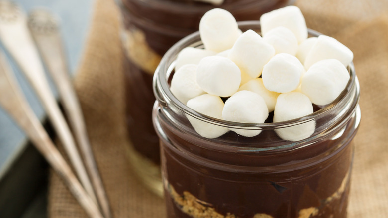 S'mores evoke memories of sticky fingers, marshmallows catching on fire, and melted chocolate dripping onto your pants. Reimagine how you eat this treat with one of the alternate forms that you can enjoy with your hands or on a plate with a fork. For a cozy cold night, make a round of s'mores hot cocoas for your family. Make your average cocoa then top with mini marshmallows, chocolate syrup, and crushed graham crackers.