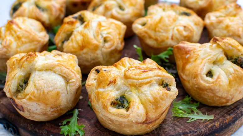 Sun-dried tomatoes come both dried and oil-packed, supplying different flavors and textures that would work well with an even more diverse array of goat cheese flavors and textures. Goat cheese and sun-dried tomatoes often come marinated with herbs and spices, which will only add to their complexity as a pairing. Since both ingredients are prepared and ready to eat, they make an easy addition to cheese plates or fancy toast toppers. But, they're also ready to be incorporated into countless other recipes, starting with this spinach and sun-dried tomato puff recipe from Tasting Table recipe developer Annabelle Randles.