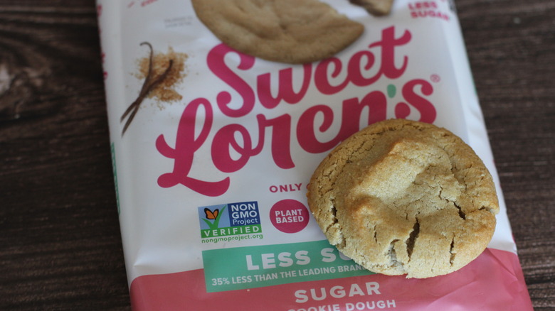 We were a bit scared to try Sweet Loren's Less Sugar cookie dough because of how our experience with its fudgy cookies went. Like the other flavors, this cookie is made with plant-based, gluten-free, and Non-GMO Project Verified ingredients. It also touts that it has 35% less sugar "than the leading brands of cookie dough." One cookie has 6 grams of sugar, compared to the 7.5 grams per cookie for Pillsbury regular sugar cookies. Although we won't know if this is the brand Sweet Loren's was referring to (and we're not math people by any stretch), we don't think that the 35% claim is necessarily accurate, at least not for all brands.