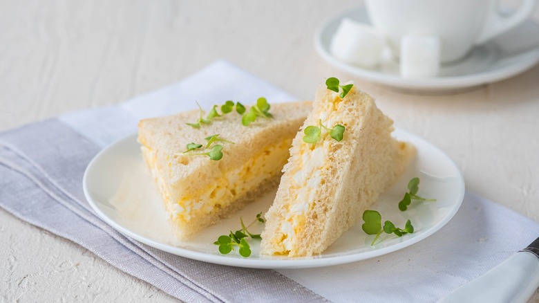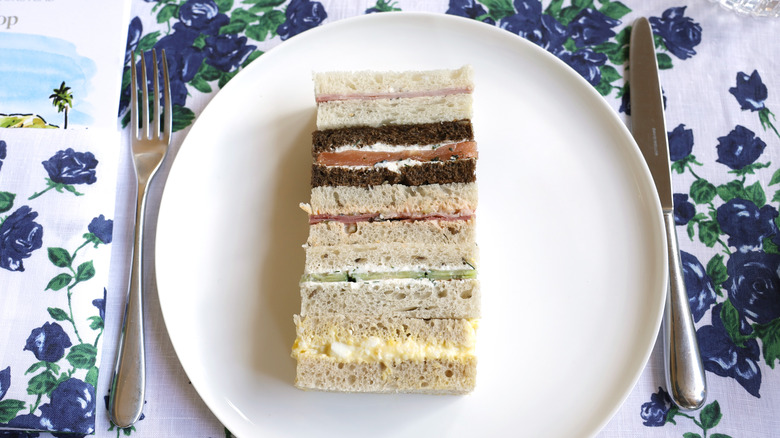 Part of the universally loved qualities of tea sandwiches is the ease with which they're eaten and with just one hand at that. If you've ever tried to wrap your mouth around a towering burger, you'll know that more fillings immediately complicate the situation. What's more, a tea sandwich is a celebration of simplicity, allowing a modest pairing of flavors to have the spotlight. Eileen Donaghey, aka The Afternoon Tea Expert's rule of thirds, is one of the best tips you need when making tea sandwiches: one-third bread, one-third filling, one-third bread. Essentially, you're aiming to fill the sandwich only as thickly as the slice of bread itself.