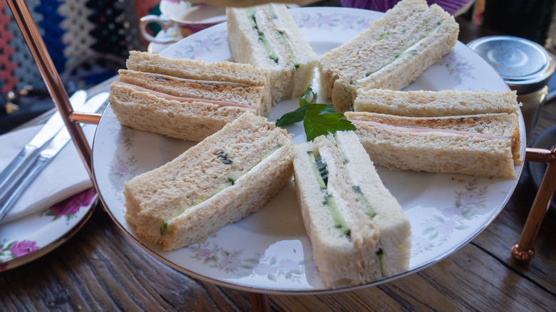 The dainty, crustless silhouettes of tea sandwiches — from rectangular 'fingers' to circles and triangles — add to the charm of an afternoon tea. In fact, according to the Cambridge Dictionary, which defines these tea sandwiches as "a sandwich cut into a small rectangle, square or triangle, usually with the crusts cut off," if a supposed tea sandwich doesn't take a geometric form then it isn't technically a tea sandwich at all.