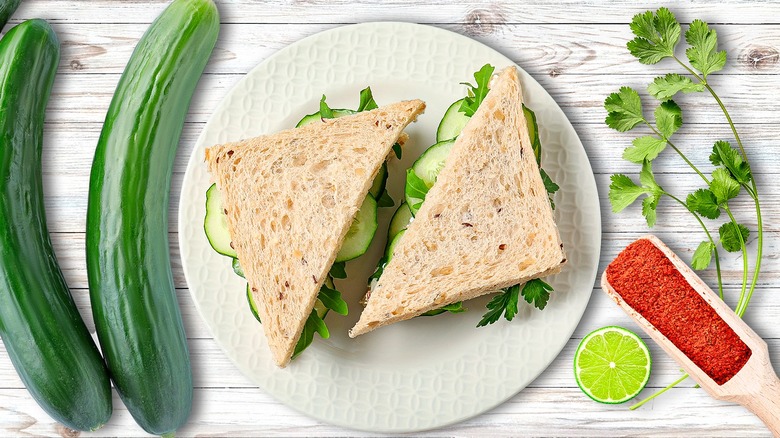 So, how does one keep cucumber slices crisp for delicate sandwiches? Cucumber tea sandwiches are almost foolproof. Almost. If the cucumber slices are too wet, people will be talking about your afternoon tea for all the wrong reasons. To avoid this crucial faux pas, slice your cucumber and place it on a paper towel, sprinkling generously with salt. By nature of osmosis, a process where fluid moves from an area of high to low concentration, over the next 20 minutes, the salt will pull some of the moisture out of the cucumber before it has the chance to wreak havoc between your slices of bread. As a bonus, you won't have to salt the rest of your sandwich — the cucumber slices will provide all the saltiness you need.