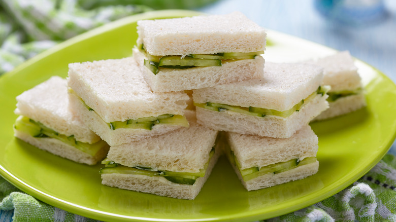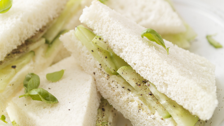 While we're all for culinary creativity, classic flavor combinations are classics for a reason, and before you go all Willy Wonka on your tea sandwiches, you best have nailed these tried-and-true fusions. Enter cucumber and butter or cucumber and cream cheese, perhaps the most quintessential tea sandwich combinations to ever grace our plate. Simple and texturally pleasing — with the freshness and crunch of the cucumber as an epicurean counterpoint to the softness of the bread — a tower of refreshing cucumber sandwiches has a place in any afternoon tea.