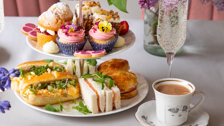 Sometimes, the best hacks are the most minimalist ones. This spicy cucumber tea sandwiches recipe is a case in point. Gently elevating the iconic cucumber sandwich, it's both comfortingly familiar and pleasantly surprising, the cilantro, chili, and lime providing a punchy, zesty counterpoint to the smoothness of the cream cheese. Tasting Table recipe developer and pastry chef Katie Rosenhouse suggests pairing these elegant morsels with mimosa or fresh fruit, another unexpected addition to your afternoon tea lineup.