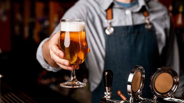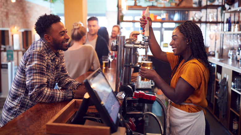 Here's the thing: A large part of the bartending job falls under the umbrella of "party liaison," and a good bartender wants to help you have a nice night. The thing is, they also want that fabulous destiny for every other patron in the bar, meaning you'll have to hop in line and wait for them to reach your turn. A helpful move can be to visibly grip some cash in your hand, so the bartender can see that you're trying to place an order. But, under no circumstances should that bill be hoisted into the air and waved like a "pick me" flag. That's a bad look, and you've just bumped yourself to the back of the line.