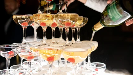 Champagne towers have long been a symbol of luxury and celebration, gracing the tables of glamorous events and upscale parties. These towering structures, often adorned with cascading streams of effervescent bubbly, evoke sophistication and extravagance and rely heavily on the firm stability of coupe glasses. Somewhat intertwined, champagne and coupe glasses have a storied past. The origins of the coupe glass date back to 17th-century Europe, where it gained popularity among the aristocracy. Characterized by its shallow, bowl-like shape and stem, the coupe was fashioned from delicate crystal or glass. However, it wasn't just aesthetics that drove the choice of the coupe; there were also practical considerations. The wider surface area of the coupe allowed the bubbles to dissipate more quickly, enhancing the aroma and flavor of the wine.