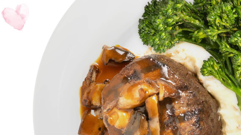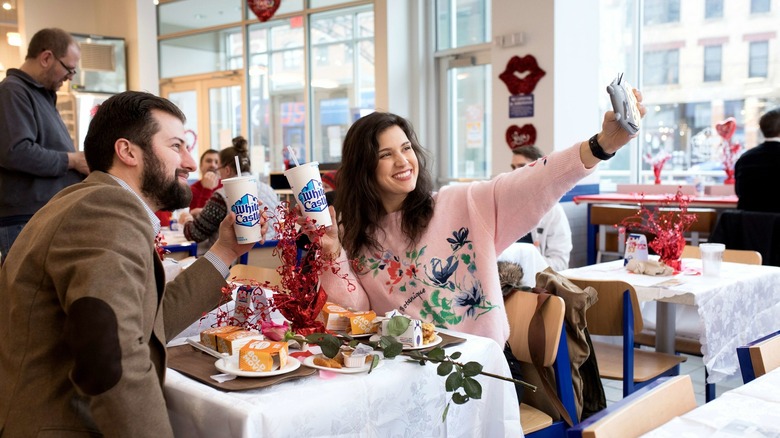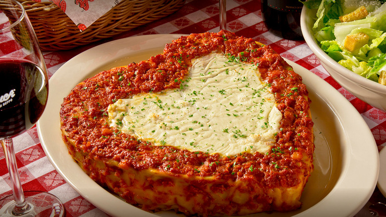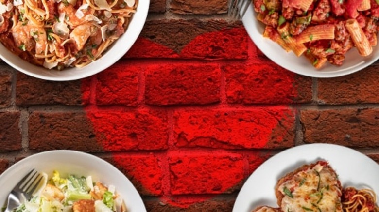 The meal begins with the dealer's choice of a Mixed Green Salad or Caesar Salad and a small order of the chain's Garlic Bread, which is made with Parmesan cheese, fresh garlic, and garlic-infused olive oil. A heart-shaped version of Buca's famed Lasagna is the star of the show. Then, you can satisfy your sweet tooth with an order of 3 cannolis — one of Italy's most esteemed desserts — dressed up with heart-shaped sprinkles. Don't forget to make a reservation or pre-order to get in on the saucy goodness.