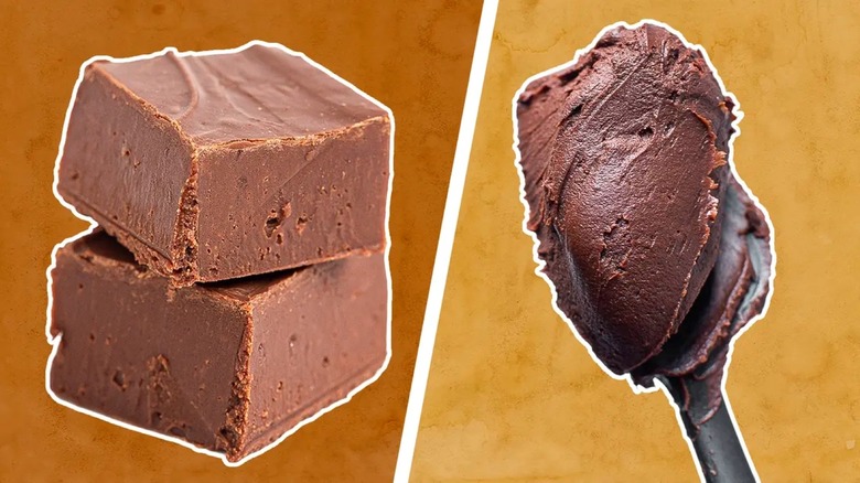 While we've only talked about chocolate fudge thus far, it doesn't have to stick to this flavor. The treat can come in a multitude of varieties — some of our favorites include dark chocolate raspberry and salted caramel. Technically speaking, it only needs butter, sugar, a dairy ingredient, and flavorings to be considered fudge. You'll typically see it cut into squares and eaten on its own like candy. Hot fudge, on the other hand, is named for the rich, fudgey texture and chocolatey flavor but typically includes corn syrup instead of a dairy ingredient to create a drippy consistency.