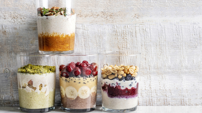 While, depending on the kind, your oats may be soft enough to eat after an hour or two in the fridge, recipe developer Catherine Brookes told Tasting Table they need at least six hours for the flavors to fully meld. That extra time they get hanging out allows all of the ingredients to fully integrate — ensuring every bite of your strawberry overnight oats tastes like strawberry and guaranteeing the pumpkin puree you mixed in gives the fall flavor you've been craving. That isn't to say you can't eat your oats before then, they'll just taste better if you wait. Next time you forget to prep the night before, make a big batch. That way, you can take what you need while the rest of your oats continue to meld to their fullest potential.