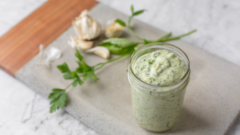 The avocado gives the green goddess sauce a super creamy and thick texture that makes it even more irresistibly delicious. Plus, the avocado provides a plethora of nutrients — vitamins, minerals, fiber, antioxidants — that the sauce wouldn't have contained otherwise. And since the avocado provides all of the creaminess, there's no need for the mayonnaise or yogurt.