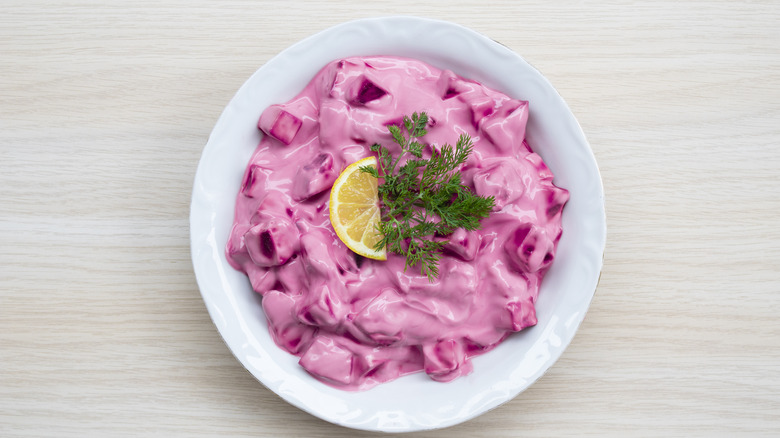 Give your yogurt an alluring burst of color with fresh beets. Beets and yogurt transcend many cultures, but in Persian culture, chopped beets are often added to yogurt and eaten as a snack or on the side of a meal. Pink yogurt is fun for most ages, so children often find it an enticing snack. The beets provide an earthy and sweet flavor, given that you cook them ahead of time. Roasting, boiling, or any other form of cooking beets will cut through the earthiness and intensify the sweet notes.