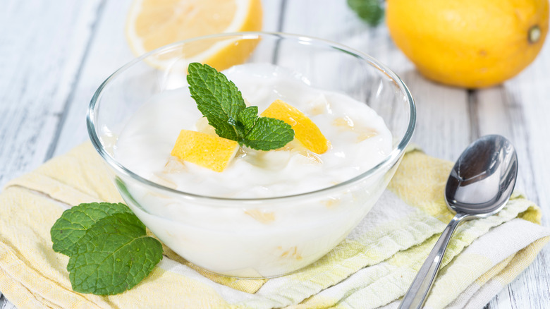 The acidity and zest of citrus fruits can augment the flavor of your yogurt by giving it a refreshing tang. Squeeze citrus in any yogurt — whether Greek, skyr, or anything in between. Try it with lemon, lime, orange, grapefruit, or another citrus. The acidity can cut through the creaminess of the yogurt to balance the taste. For best results, squeeze it by hand or with a juice squeezer, but packaged lemon or lime juice are options, too. While you're at it, drop in some of the zest for additional flavor and some texture.
