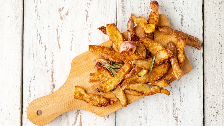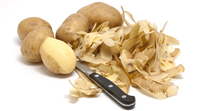 You'd be surprised what you can conjure in the kitchen with ingredient leftovers. Take potato peels, for example. They are perfectly edible, yet commonly thrown away. Along with having a wide range of culinary uses, most people aren't aware that potato peels contain more dietary fiber and antioxidants than the flesh itself. Suffice it to say, you've been missing out on this versatile leftover. Beyond its nutritional value, it can provide texture or be turned into an entirely new dish. Here are some sustainably creative ways to use potato peels.