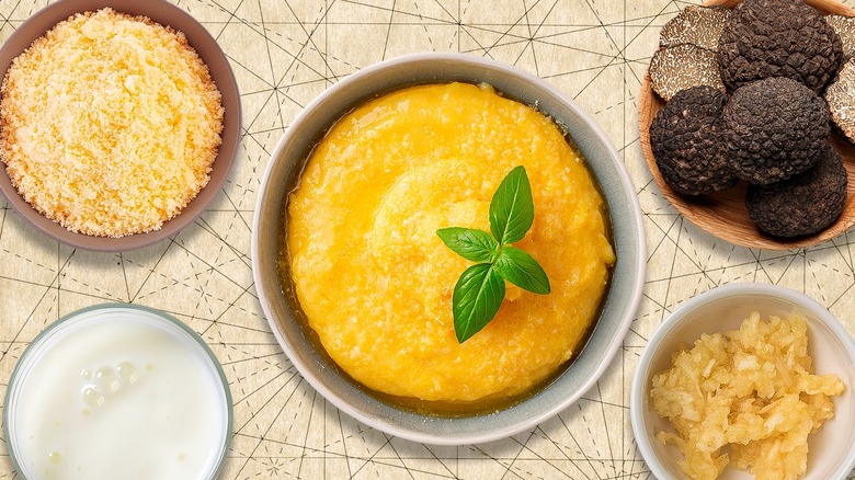 A staple in many Italian restaurants, polenta is the ultimate comfort food. Dried and ground corn is cooked until it's soft and velvety. This is the type of dish that people love to eat when dining out because it's not quite as easy to make as it looks. In Italy, it's traditionally served as an accompaniment and prepared quite simply, with some salt, butter, olive oil, or cheese. However, because it has quite a neutral taste, it's a dish that lends itself to many variations, flavor additions, and exciting ways to jazz it up and make it even better. Whether it's about how you cook it, how you eat it, or what you serve it with, the versatility of polenta is endless. Here are some of the best ways to upgrade your polenta.
