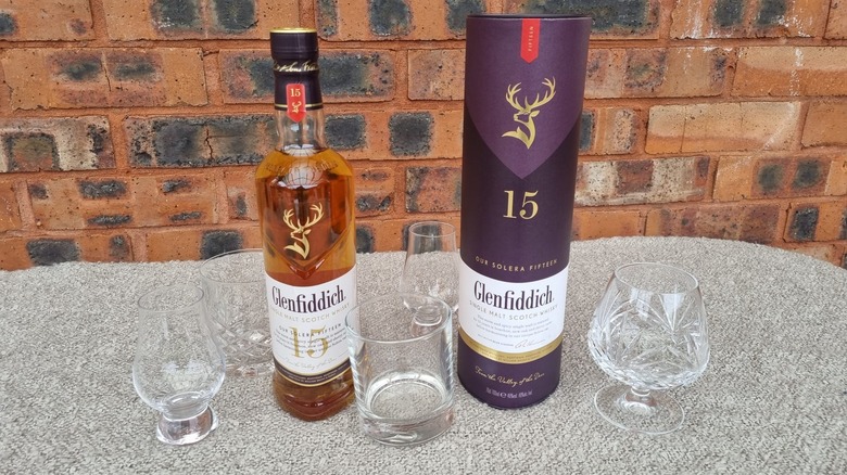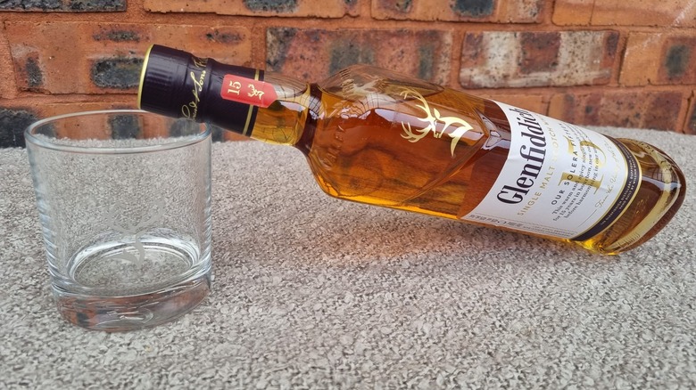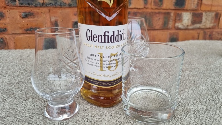 Glenfiddich 15-year is known for its smooth profile, and at 80 proof, the alcohol content isn't going to overwhelm you. As with any new spirit, having your first taste in a high-quality glass is a great idea. The established choice is a tulip-shaped glass called a Glencairn glass. These glasses concentrate the aromas and allow you to open up the whisky and appreciate its viscosity and color. We wouldn't recommend adding it to mixers or cocktails, but you shouldn't feel guilty about doing so. With it not being a premium-priced spirit, Glenfiddich 15-year offers a broad spectrum of possibilities for every whisky enthusiast.