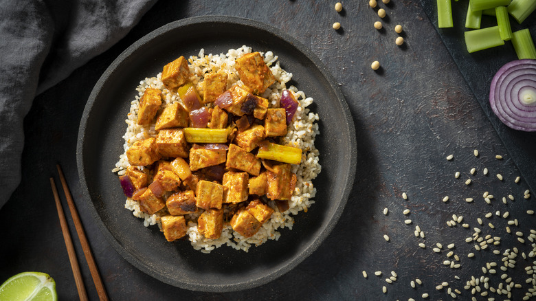 Luckily, the change in tofu's structure can be a good thing. The freezing process actually makes the tofu stronger and, thus, able to better hold its shape when it's mixed into dishes. Thanks to there being less water, the tofu becomes chewier and more meat-like, which can be a major plus for those looking to eat less meat without having to sacrifice everything meat brings to the table. Finally, the small holes that form on the tofu become vessels to hold spices and marinades better — meaning that the tofu becomes even more flavorful.