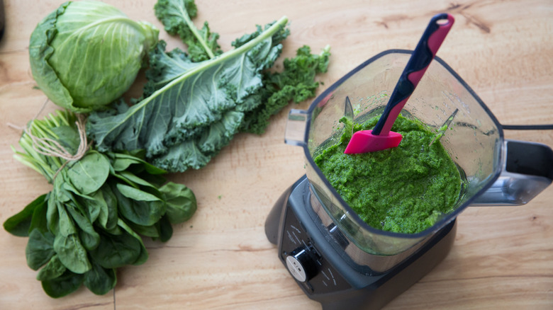 Cabbage isn't as widely seen in green juice recipes as kale and spinach, but there's no reason to stay away from this healthy vegetable when making juice. Like kale, cabbage is a cruciferous vegetable (like Brussels sprouts, arugula, bok choy, mustard greens, and collard greens, to name just a few other cruciferous leafy greens that could be juiced). Cabbage is especially high in vitamin C, an antioxidant that improves immune function. It contains several anti-inflammatory compounds and has been used as a traditional remedy for stomach ulcers. Healthline even reports that indoles, antioxidants in cabbage juice, were shown to kill breast cancer cells in humans.