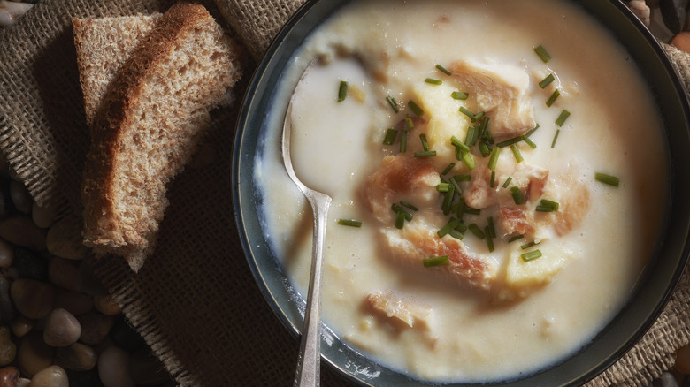 Some recipes may call for chopping filets into (albeit, decently sized) chunks. But, there's a risk that they'll dwindle into nothing, the longer that they simmer in the pot. Instead, by leaving filets intact, this allows fish to hold onto its shape better. Even then, filets will eventually flake off into smaller pieces. The good thing is that when this does happen, these natural flakes will give chowder an increased textural variety, which ultimately improves the tasting experience.