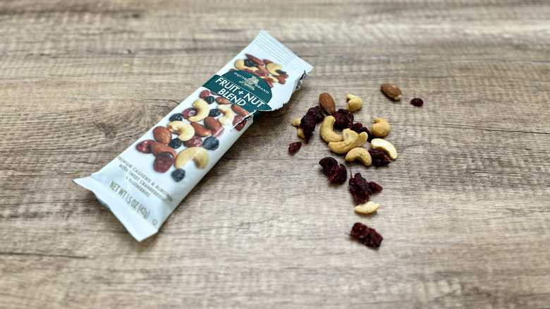 For those partial to nibbling on fruit and nut mixes, the Squirrel Brand Fruit + Nut Blend pack, available for $2.25, offers a delightful blend. Featuring a carefully curated mix of cashews, almonds, dried cranberries, and blueberries, this snack hits the right notes with its tender nuts and slightly juicy berries. Although it doesn't boast any unique qualities that set it apart from other fruit and nut packages, its affordability and quality make it a commendable choice for the price.