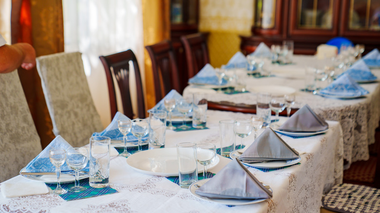 While you may not be familiar with the term "Service à la Russe," or Russian-style service, you know what it is. While Service à la Russe — a title that refers to the way food is presented and arranged — is just one type of table service, it's the standard in Western homes and restaurants. Each course is brought to the table separately and sequentially. While it may seem natural to us now, this style wasn't always in vogue. Up until the early 19th century, French-style service, or "Service à la Française," was the norm throughout most of Europe.