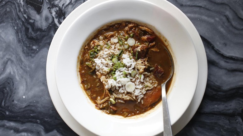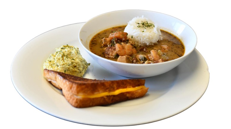 Many of the restaurants on our list offer one or two varieties of gumbo to choose from, but Chef Ron's stays true to its name and offers guests a plethora of potential gumbo combinations. For your first time, try the restaurant's most famous option — stuffed gumbo. This Chef Ron original stew, made with chicken, shrimp, crab, sausage, and okra, is made in his signature Creole style and comes topped with fried catfish. It doesn't get much more traditionally Louisiana than this dish. Chef Ron's Gumbo Stop is open Tuesday through Saturday for lunch and dinner.