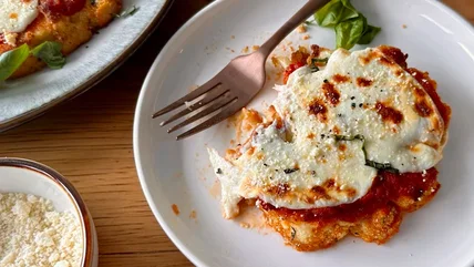 Take chicken Parmesan and make it plant-based. This cruciferous take on a classic is crispier and lighter than the original, with palate-pleasing pizza notes brought by the mozzarella, Parmesan, and marinara sauce topping. It's a dish that'll satisfy meat-eaters and vegetarians alike.