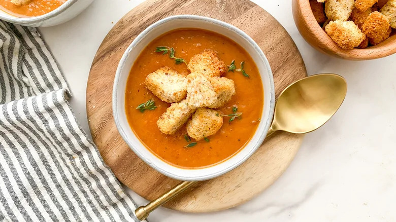 Roasting your vegetables before making your soup is a surefire way to concentrate the caramelized flavors and channel the inner sweetness of your ingredients. This soup doesn't just call for roasting the tomatoes but also the squash, onions, and carrots. Once the veggies are soft, they can be transferred to a blender before being finished off on the stove with sweet coconut milk.