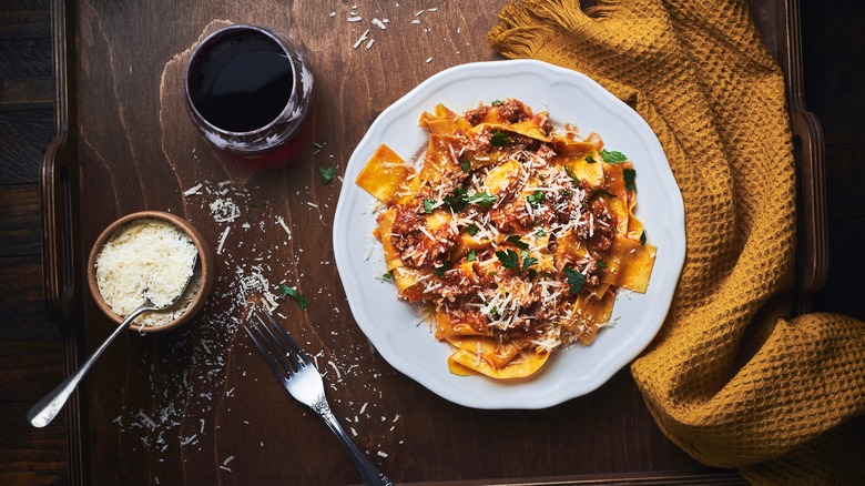The key to this recipe is slow cooking over time, allowing the vegetables (mushrooms, carrot, onion, and celery) and meats to meld and develop depth, so be sure to leave at least a few hours for prep and cooking time. For that reason, this is a great recipe to make ahead of time — the sauce can be made up to three days ahead, which will allow even more opportunities for the flavors to build. Serve with pasta like a pappardelle and a healthy portion of fresh-grated Parmigiano-Reggiano, and enjoy.
