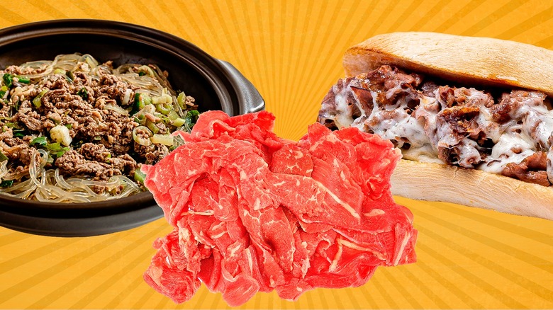 If you're looking for a quick way to add flavor, nourishment, and convenience to your meals, look no further than shaved steak. It turns out that shaved steak is an ideal option for far more than just Philly cheesesteaks — it's delicious when added to a range of dishes and types of cuisines. Unlike a thicker cut of beef, shaved steak typically cooks in mere minutes, making it an optimal weeknight dinner option. Shaved steak stays tender and absorbs maximum flavor, making it a versatile option that can add depth to your food in minimal cooking time.