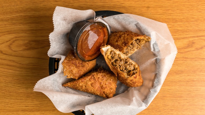 This Tex-Mex favorite takes a classic burrito one step further by frying it, resulting in a crispy, melty, and savory chimichanga. Several restaurants claim to be the first to create this deep-fried dish — a number of chimichanga origin stories involve accidentally dropping a burrito into a vat of hot oil. Regardless of its debated history, using shaved steak is a natural fit for chimichangas. Using a thinner cut of steak allows you to pack in a greater combination of ingredients without overloading the burrito, which is key to keeping it from falling apart while still getting maximum flavor.