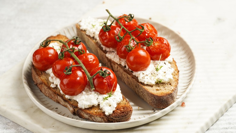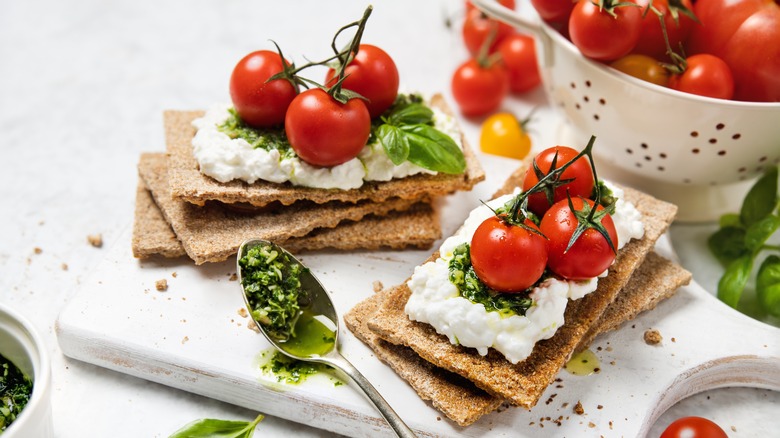 Captivatingly vibrant from appearance to taste, Caprese salad is a welcomed sight at any dining table. It typically consists of tomatoes, basil, and fresh mozzarella, all drizzled with olive oil, balsamic vinegar, and a pinch of salt. While this familiar combination is one that never fails to delight, switching things up every once in a while is just as fun. If you don't want to alter this dish entirely and only want to add a different, tangy edge, swapping the mozzarella with cottage cheese is an excellent idea.