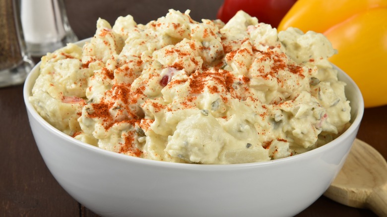 There are so many recipes for potato salad made with various ingredients, dressings, and types of spuds that it's impossible to list them all here. Perhaps you have a family recipe that's been served at cookouts and holiday gatherings for generations, or you're keen to a modern twist on the side dish after listening to your favorite food influencer. Despite what recipe you choose for your next batch, blue cheese is one of the more unlikely ingredients that can elevate potato salad with its bold and funky (in a good way) flavors.