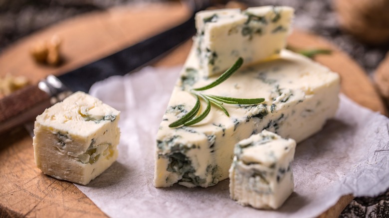 Because of the contrasting texture and added umami from the pork, blue cheese pairs well with bacon. So, feel free to add both to your next bowl of potato salad. Other ingredients like celery, red onion, and scallions offer even more flavors and textures that contrast with the creamy, soft cheese. If you don't already have a go-to recipe, consider Tasting Table's creamy dill potato salad made with fresh dill and lemon juice, or test the ingredient swap with our classic Southern potato salad recipe. The funky blue cheese will work with pretty much any potato salad variation — so long as you don't mind its bold and unique flavor profile.