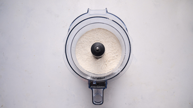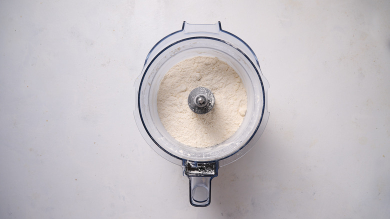 - Start making the crust: Add the flour and salt to a food processor and pulse to combine.