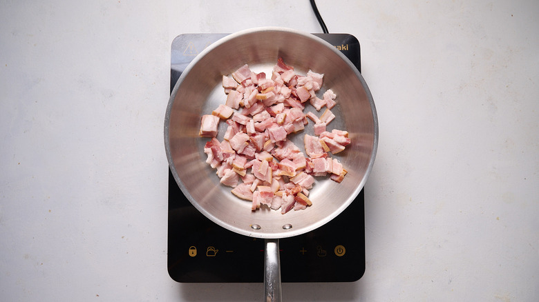 Add the butternut squash and bacon to the shell, reserving about 2 tablespoons of each.