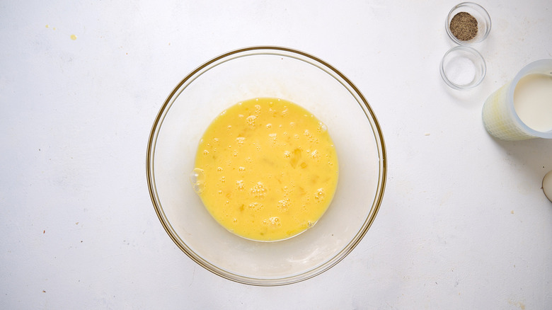 - Whisk the eggs vigorously in a large bowl until smooth.