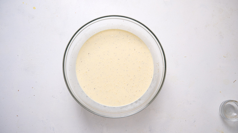 Combine the eggs, cream, milk, remaining 1 teaspoon salt, and remaining 1 teaspoon pepper. Whisk or blend until completely smooth.