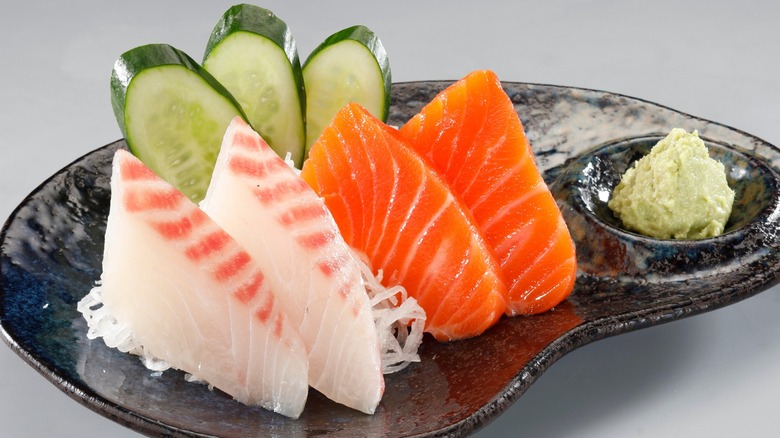 In addition to thoughtful sourcing and butchering — "sashimi" means "pierced body" in Japanese – sashimi's appeal lies in its presentation. Pieces are aesthetically arranged on a plate, oftentimes in odd numbers. There's thoughtful avoidance of overcrowding, and simple garnishes add a dash of color. The sashimi is then eaten with chopsticks, oftentimes as a standalone course that's part of a larger meal. Such a serving style allows diners to focus on each individual bite of fish.