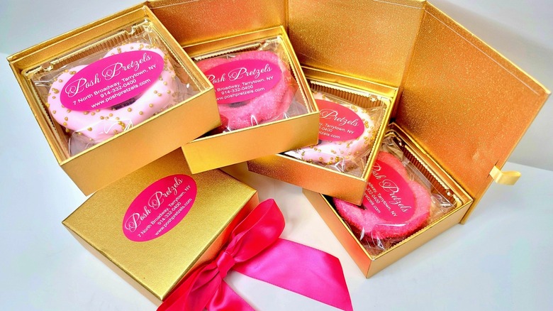 Chocolate-covered pretzels are decadent enough as it is, but Posh Pretzels outdid themselves with a cascading gold gift box featuring four tiers of handcrafted chocolate-covered pretzel morsels and it sounds like heaven has a barcode now. Not to be outshone by all of the hype surrounding "Barbie," these sweet little snacks are covered in pink chocolate with gold accents and pink garnishes dotted across. Savory, sweet, and perfectly crunchy, these nominees are about to indulge.