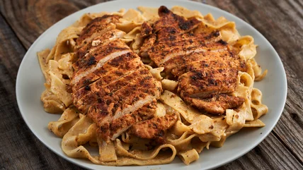 Contrary to popular belief, blackened chicken isn't burnt. The charred-like edges come from a special Louisiana spice blend that includes garlic powder, onion powder, black pepper, cayenne pepper, smoked paprika, and dried herbs. Depending on how spicy or even smoky you want the spice blend to be, you can also include other Louisiana staples like Cajun spice or Creole spice in the mix. When cooked, it caramelizes into a crispy layer over the chicken's exterior, creating a delightful contrast with the tender, luscious sauce-drenched pasta.
