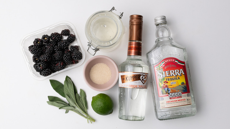 Gather the ingredients for this botanical blackberry sage margarita recipe