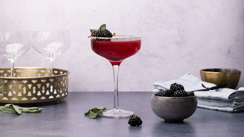 Looking for a refreshing twist on a perennial, classic cocktail? This recipe from Tasting Table's recipe developer Jennine Rye gives an interesting new take on a cocktail menu staple, the margarita. This blackberry sage margarita is a delightful concoction that tantalizes the taste buds with its unique blend of flavors. Combining the sweetness of ripe blackberries with the earthy, aromatic essence of sage, this cocktail is a perfect balance of fruity and herbal notes.