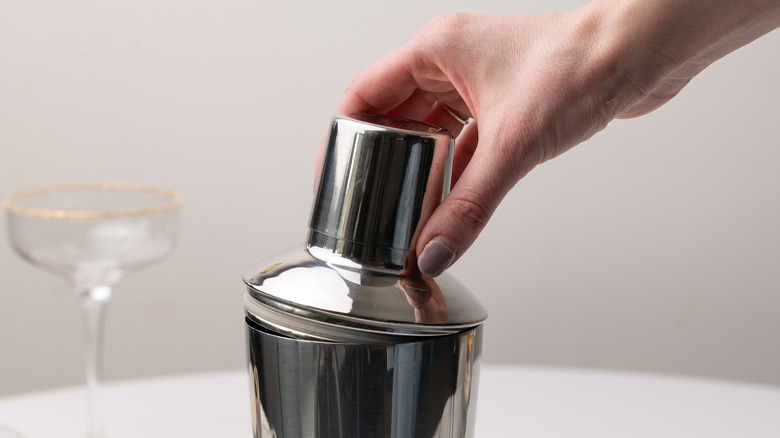 - Add tequila, triple sec, and simple syrup to the cocktail shaker.