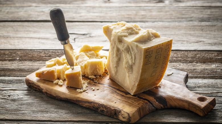 Parmesan cheese is one of the most delicious and versatile ingredients in a cooking arsenal, which makes all of the labeling conventions around cheese that much more frustrating. Parmesan isn't just for pasta or adding a cheesy taste, it's a multi-purpose source of salt and umami flavors that can elevate anything from sauces and soups to roasted vegetables. But, in order to use it well, you have to know what kinds of flavors and textures you're getting when you buy it. Unfortunately, in the U.S., the quality of parmesan can vary wildly from one brand to another, and a lot depends on where it's produced.