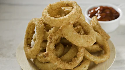Using cornstarch in your onion ring batter is going to prohibit the gluten in your flour from turning tough. This means you won't end up with an overly chewy texture when you bite into your onion rings. And as an added bonus, cornstarch is going to give this beloved fried food a lighter taste. While it sucks up the water from the onions, cornstarch doesn't absorb very much oil. This means less grease and a better-fried battered exterior.