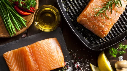 Not only does this prevent the taste of the olive oil from dying off, but it preserves the delicate pink color of the salmon. When overcooked, the fish tends to take on a whitish tinge, so you'll want to maintain the temperature and cook it for no longer than 15 minutes. Olive oil already has a delicious flavor, so you'll only need to add a few herbs and spices when poaching the fish. Simmer it in the olive oil so it can infuse it with flavor or drop an aromatic-filled sachet into the pot before placing the salmon inside.