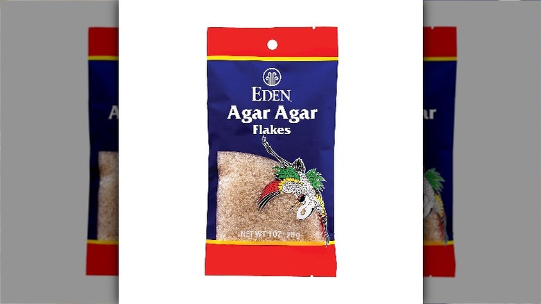 So, the next time you have homemade marshmallows or custardy desserts in mind and are catering to a vegan crowd, remember to stash some agar powder in your cupboards for convenient use. What's more, agar offers texture without adding any flavor, color, or aroma. A spoonful of the dry ingredient can quickly build up weak soups or runny-looking sauces. For Jell-O fans, the ingredient can also stand in for gelatin, and placing a teaspoon of powdered agar into any cup of liquid will make a dense jelly. For cooks wanting a bit more control without turning recipes into quick jelly, less intense agar flakes (pictured) can also be used instead of the powdered form.