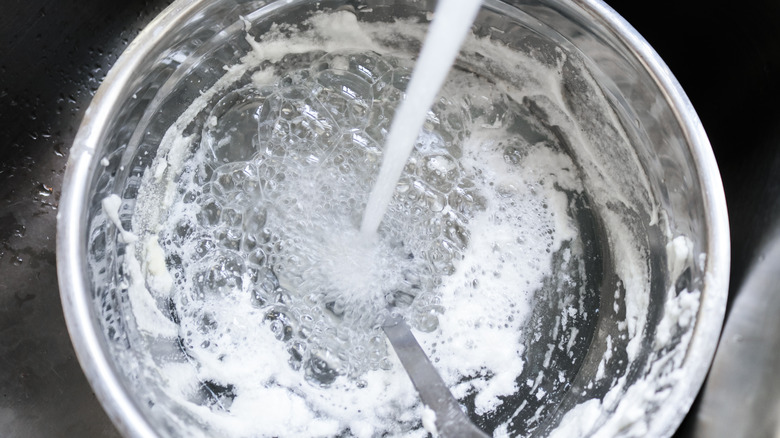 Just as grease residing in a plastic bowl can hinder the process of beating egg whites, any oil or fat residue that may linger on your glass bowl or whisk will limit the amount of rise you can achieve. This is because of the delicate network that is formed by the protein in egg whites. The proteins go through certain stages as they are stirred up, first expanding before joining together. These connected, expanded proteins come together to build a type of structure. Any pockets of air that form as a result of whisking become trapped by this structure of proteins, which becomes more rigid as whisking continues. With nowhere to go, these pockets of air are locked in place by the proteins, and the mixture turns foamy as a result. Unwanted fat residue hinders this reaction by filling up these pockets of air. Without this air, you will be virtually unable to form a foam, regardless of how hard you beat your whisk.