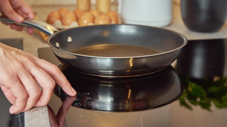 When frying egg whites in a pan, a low-to-medium consistent heat level helps cook the eggs evenly and prevents burning or drying them out, as well as ensuring that they do not stick to the bottom of the pan, even without the addition of oil or butter. You'll likely find that egg whites cook very quickly even without a high heat, with soft and fluffy scrambled egg whites taking no longer than three to four minutes from start to finish in a pan, or under two minutes in the microwave.